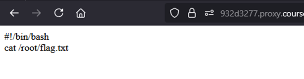 Since the goal is to retrieve the flag from the /root directory, we can do an easy test to see if we have permission to access the /root directory. Using the same payload format as above, we can attempt to grab the contents of /root/flag.txt and redirect standard errors to the standard output by adding 2>&1 to the file (this allows us to see any error messages).